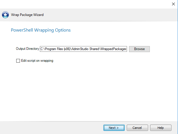 Specify the Output Directory, the location where the PowerShell-wrapped package will be stored. For more information on wrapping msi/exe packages to Wise script wrapped exes, see Wrap MSI/EXE Packages Using the Wrap Package Wizard.