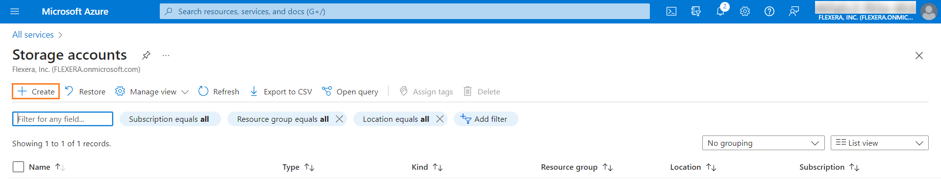 Upon successful action, a newly created storage account will be listed in the Storage accounts page
