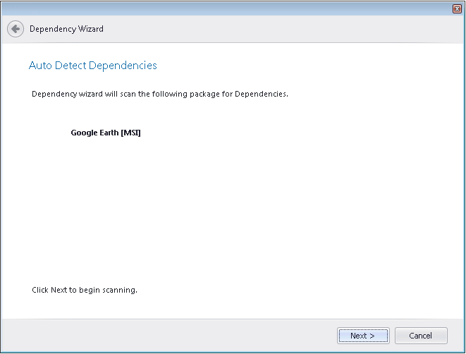Click Next to begin scanning. Application Manager will begin to automatically scan the file headers of Windows Installer packages to determine if any dependencies exist.