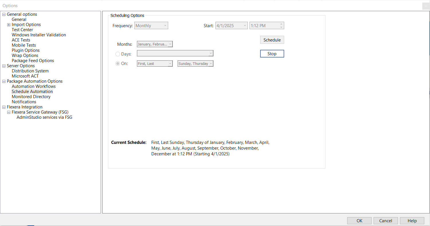 Under Package Automation Options, select Schedule Automation. The Scheduling Options tab opens.