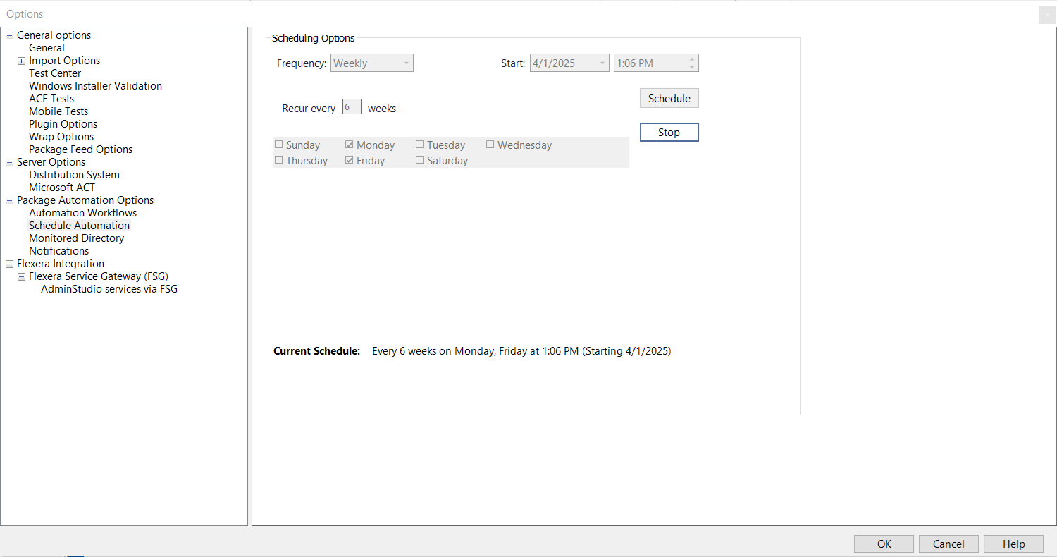 Under Package Automation Options, select Schedule Automation. The Scheduling Options tab opens.