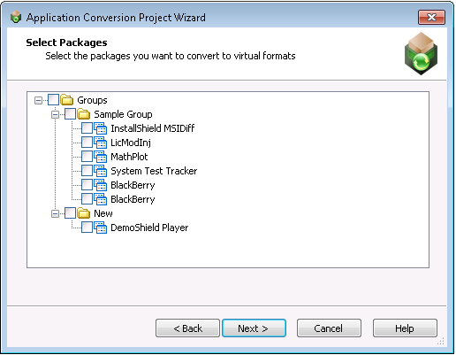 noteIf you have selected Windows Installer packages on the Selected Package List panel, but those packages do not require repackaging prior to virtualization, the Windows Installer Package (*.msi) option on the Select Output Formats panel will be disabled. If you want to force the Automated Application Converter to repackage that package, return to the Selected Package List, click in that package’s Virtualization Readiness column and select Requires repackaging from the list.