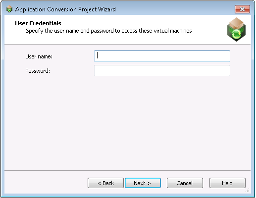 Click Next. The User Credentials panel opens, prompting you to specify the login credentials to use to access the selected virtual machines.