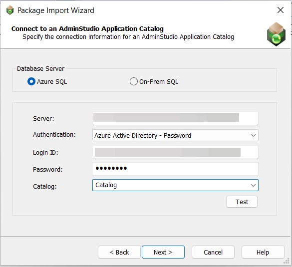 • If you selected Server Authentication, enter the appropriate Login ID and Password. If you selected Azure Active Directory - Password, enter the appropriate Azure Login ID and Password.