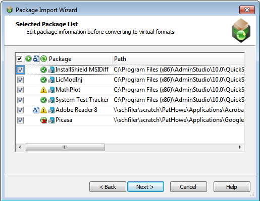 • An icon in the Virtualization Readiness column identifies whether the package requires repackaging prior to conversion to a virtual application: