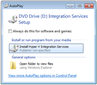 - Click Install Hyper-V Integration Services.