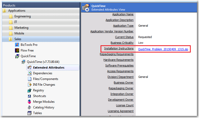 Review the information in the Additional Details area, which contains a text description of the steps that were taken, along with information that is internal to the repackaged application.