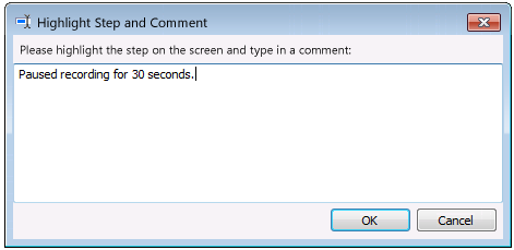 Add Comment—Click to pause the recording and open the Highlight Step and Comment dialog box where you can enter a comment. This comment will appear in the generated output file.