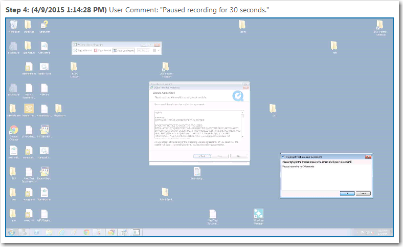 - If you entered any comments, they are listed in the file along with a screen capture of the Highlight Step and Commen t dialog box.