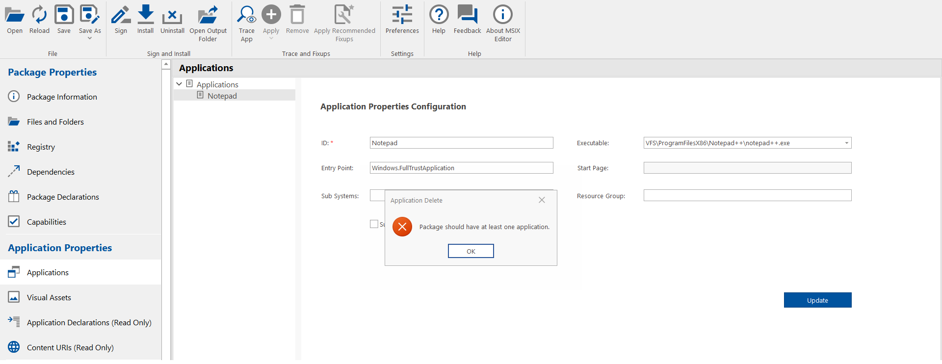 Make sure that at least one application is required in the MSIX package, if not below error message will appears.